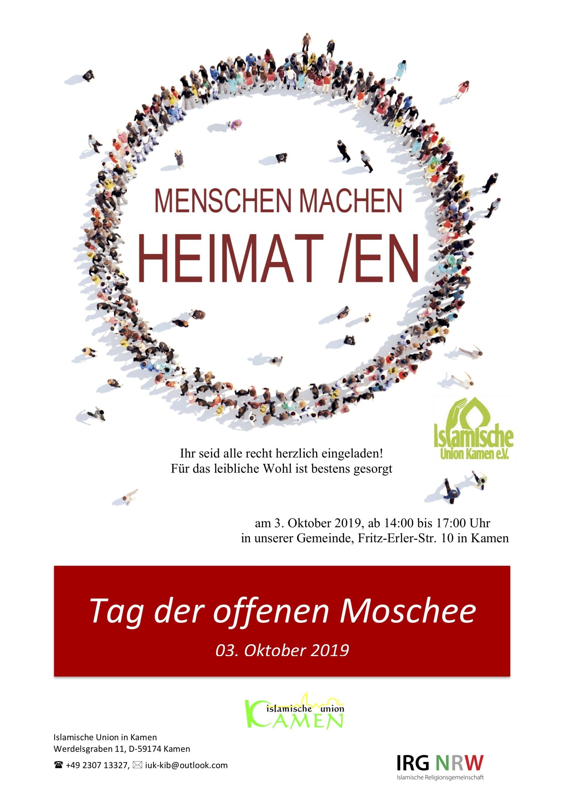 „Menschen können mehr als eine Heimat haben. Heimaten zu haben ist in einer pluralen und globalen Welt der normal“. Anlass ist der Tag der offenen Moschee (TOM) am 3. Oktober. Das Motto der diesjährigen TOM lautet: „Menschen machen Heimat/en“.